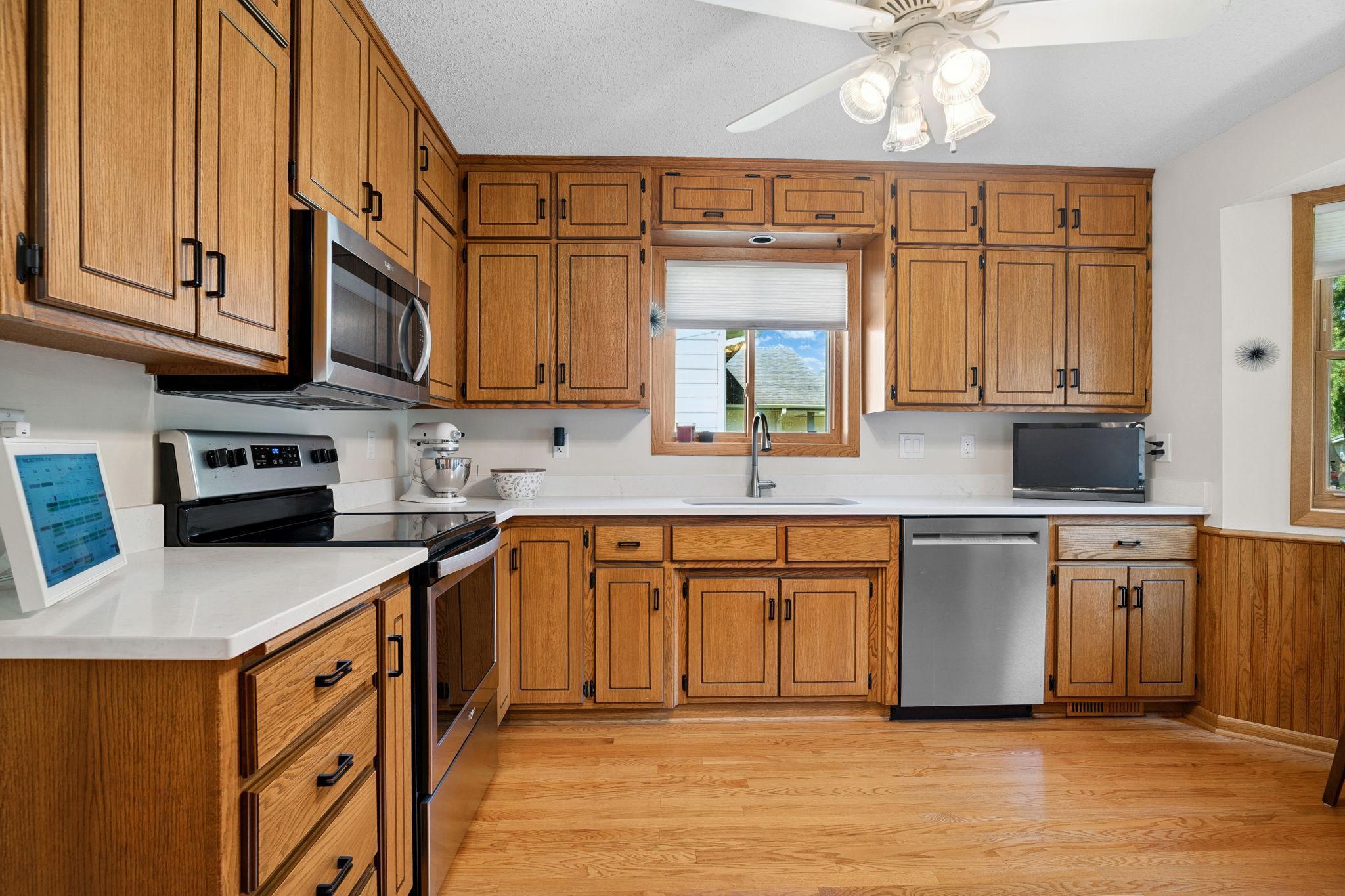 Welcome to this beautifully maintained 3-bedroom, 3-bath, 3-level split home with numerous updates and a prime location! Enjoy classic oak floors, a cozy brick fireplace, and a spacious 2.5-car garage. The master suite features a private ensuite bath, and the expansive backyard is perfect for relaxing or entertaining. Major updates include a new roof (2021), furnace (2022), A/C (2021), water softener (2020), and garage doors (2017). Conveniently located near Target, Walmart, Fresh Thyme, and a variety of restaurants. Easy access to I-35 and just minutes from Berwood Park. A must-see home in a highly desirable area!